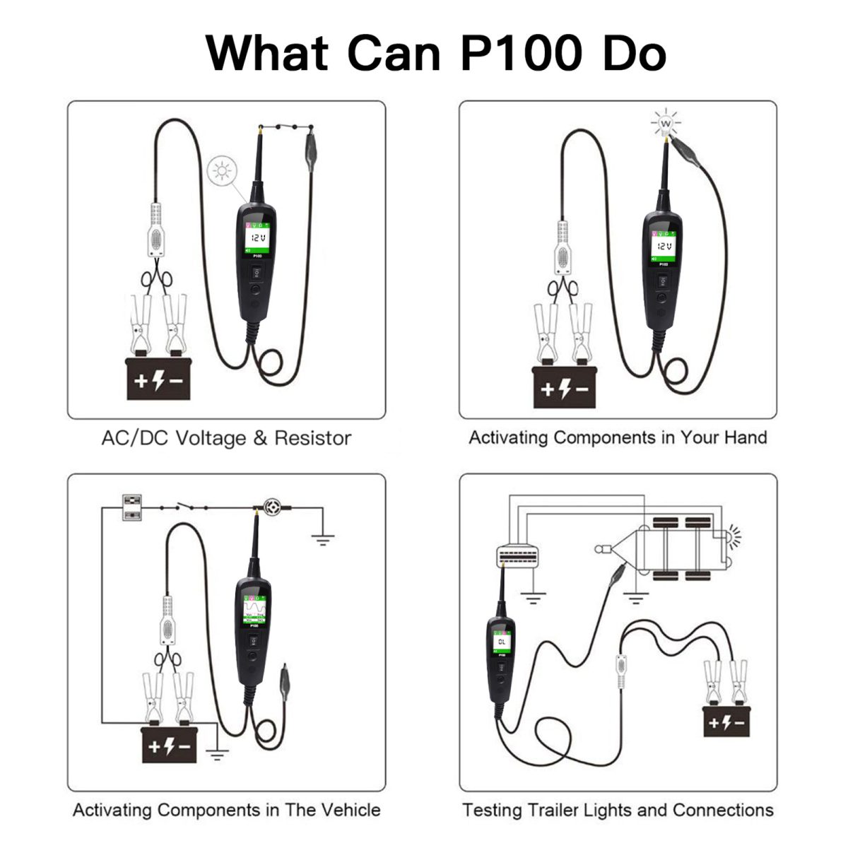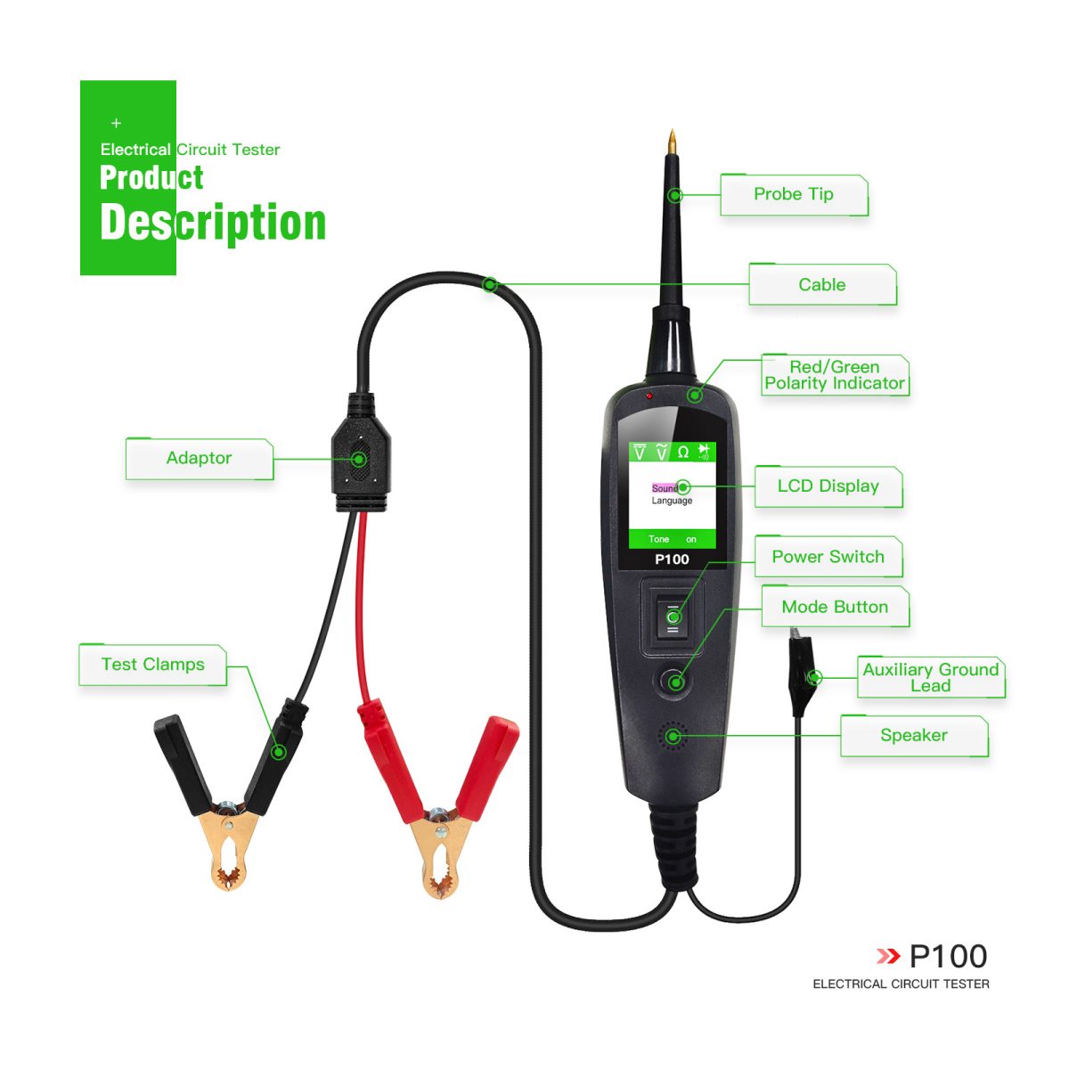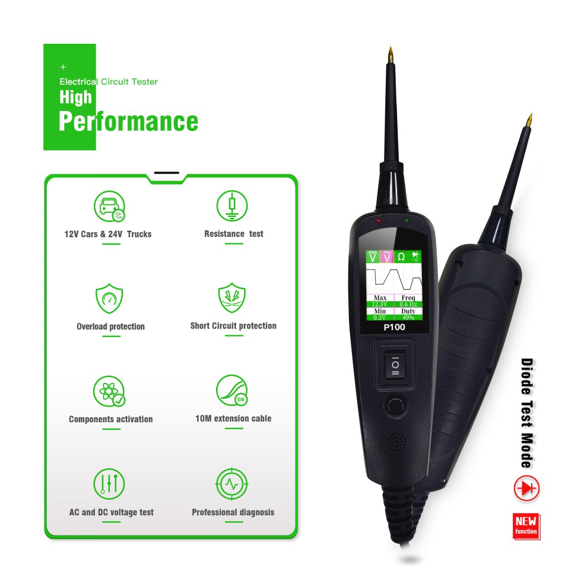 TOPDIAG P100 พร้อมเครื่องทดสอบการวินิจฉัยวงจรรถยนต์ความยาว 2 เมตร