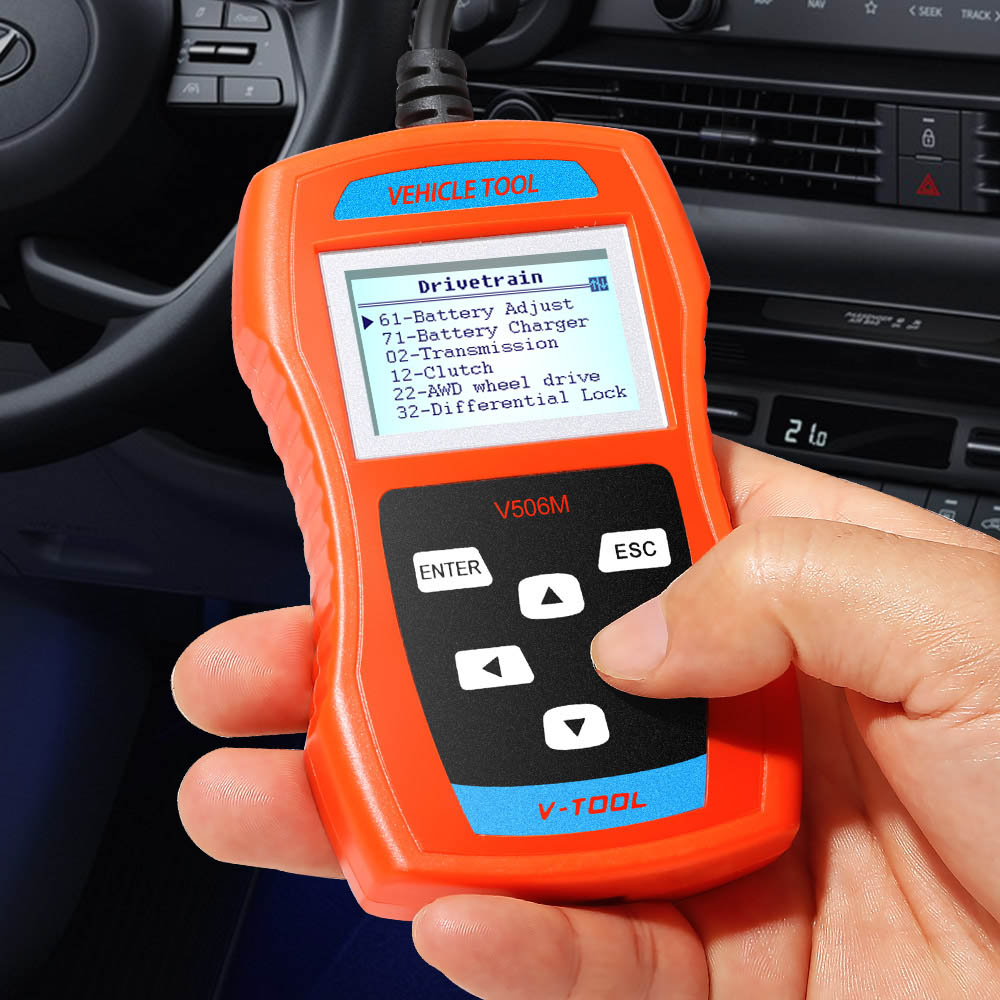 V506M เป็นเครื่องมือวินิจฉัยที่ผู้ใช้สามารถระบุตำแหน่งเครื่องยนต์เกียร์ ABS และถุงลมนิรภัยได้อย่างถูกต้อง นี่คือสแกนเนอร์สำหรับยานพาหนะทั้งหมดของ VW, Audi, Seat และ Skoda มากกว่า 130 ระบบ รองรับเครือข่ายพื้นที่ควบคุม (TP-CAN) และโปรโตคอล UDS ใหม่