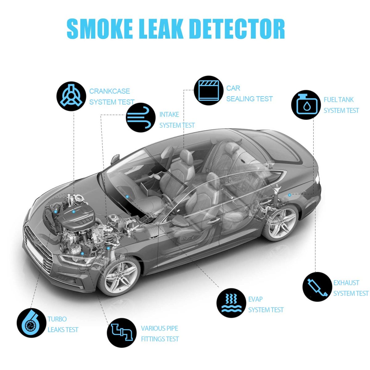 ด้วย VXSCAN V4 คุณสามารถตรวจสอบซีลรถยนต์, เพลาปีกผีเสื้อ, บล็อกเครื่องยนต์, ระบบทดสอบเทอร์โบ, ระบบเพลาข้อเหวี่ยง, ระบบไอดี, ระบบไอเสีย, ระบบถังน้ำมันเชื้อเพลิง, ระบบ EVAP, ระบบ EGR, ระบบระบายความร้อน, ปัญหาการรั่วไหลของอุปกรณ์ท่อต่างๆ
