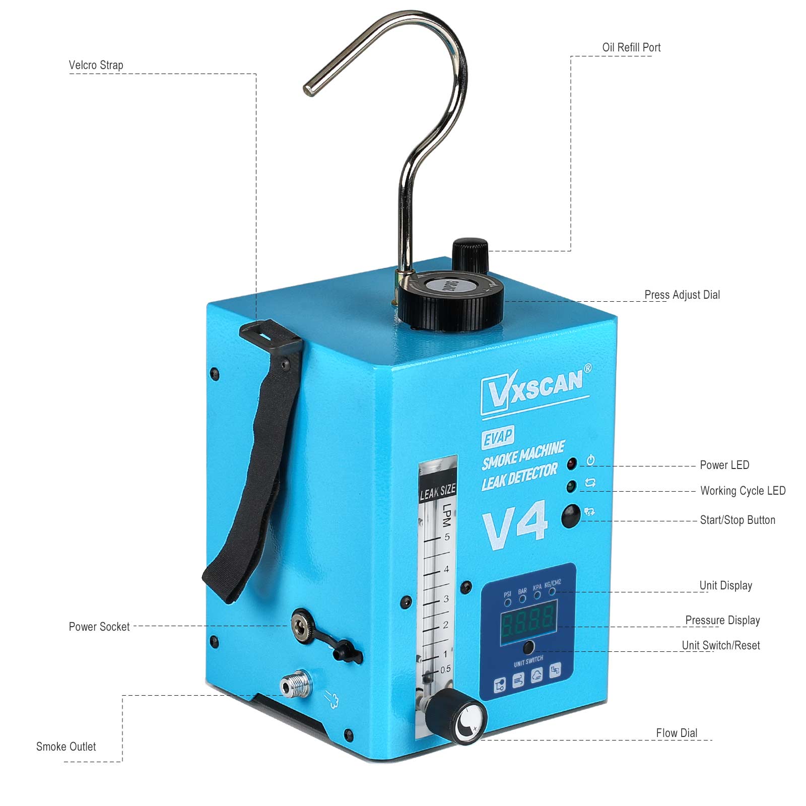 VXSCAN V4 เครื่องตรวจจับการรั่วไหลของควันอัตโนมัติถูกออกแบบมาเพื่อทดสอบการรั่วไหลของระบบท่อของยานพาหนะสามารถใช้ในรถยนต์รถจักรยานยนต์สโนว์โมบิล ATV รถบรรทุกขนาดเล็กเรือ ฯลฯ