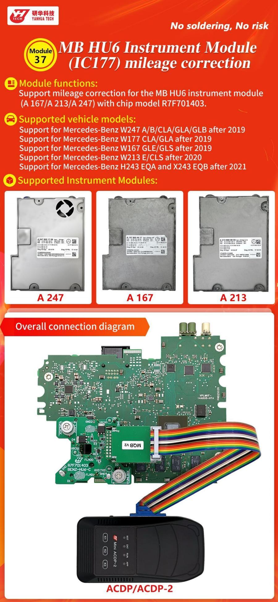 Yanhua Micro ACDP-2 โมดูล 37 สำหรับการแก้ไขไมล์สะสม MB HU6 Instrument Module (IC177)